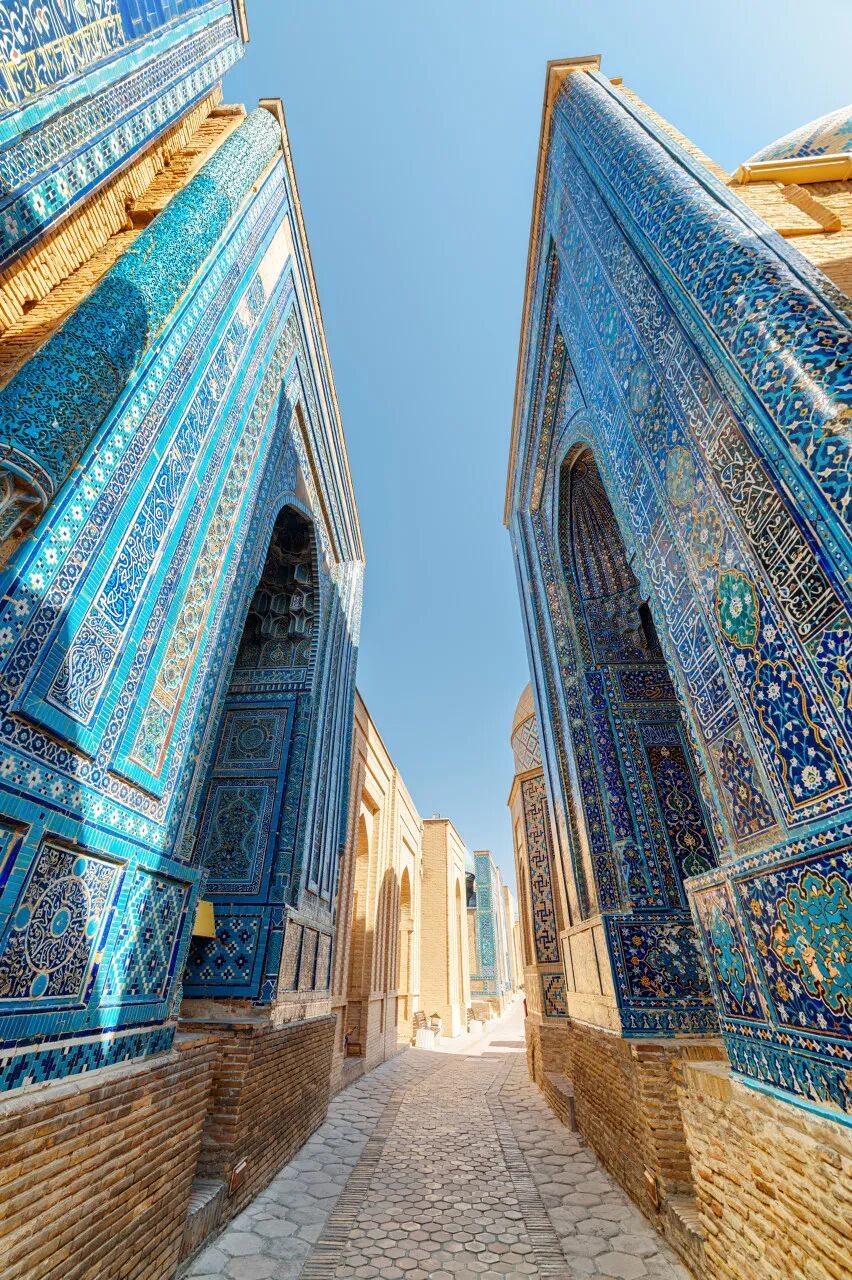 在撒马尔罕老城的另一边,沙赫-静达陵墓群是另一种完全不同的舒畅深千里的好意思。走进去那条长长的通谈,像走进了一条深深的时刻隧谈。
