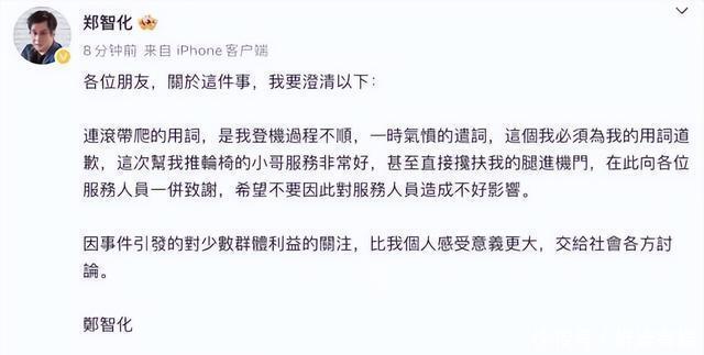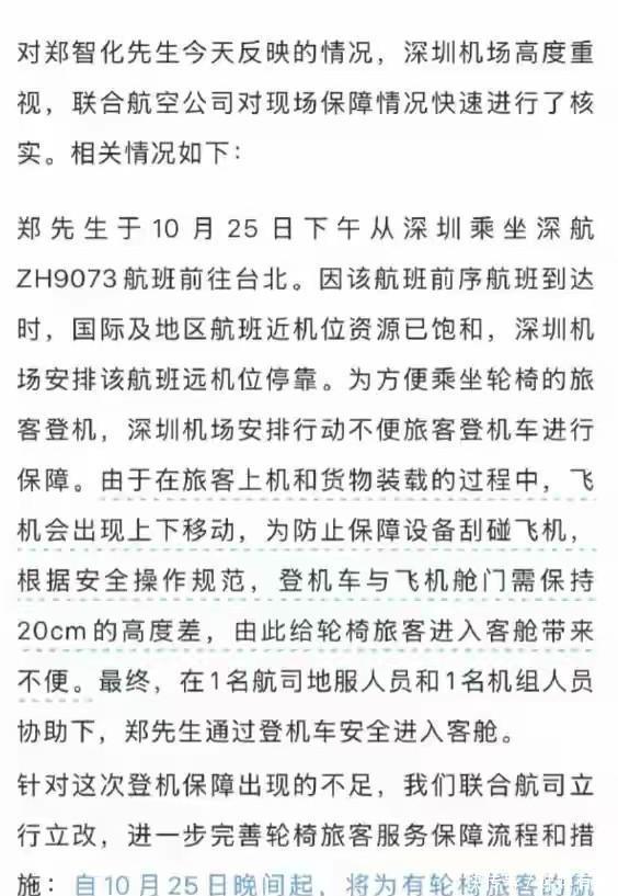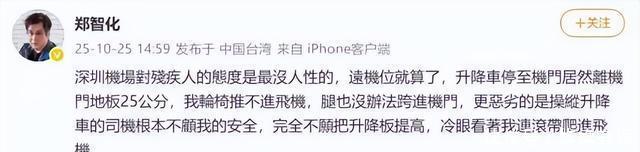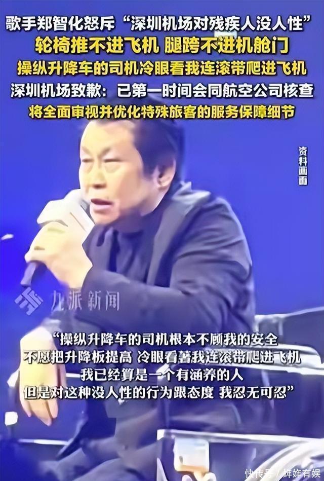 毕竟,不是所有东谈主皆是老何家的男儿。 这不,最近郑智化也跟机场杠上了,他先是在微博爆料说升降机和机门地板差了25公分,我方坐着轮椅没主见激动机舱。