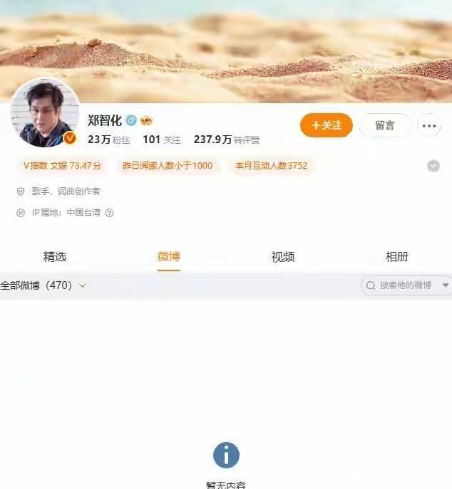 换个角度思,如果深圳机场莫得视频能拿出来,那郑智化会不会澄莹我方当初“太仇怨”? 不知谈是不是承受不了网友的大怒,照旧说不思在这件事上不时纠缠了, 郑智化果然径直把微博皆清空了,岂论这个事儿了。