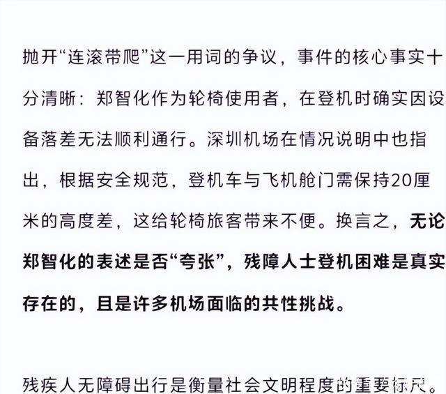 第一个亦然最中枢的一个即是劣势东谈主士登机到底有莫得不便捷的所在? 郑智化说的话天然有夸大身分,但也能代表许多劣势东谈主士的心声。 他淌若真的莫得遇到未便,也没必要闲着没事儿出来给机场泼浑水。
