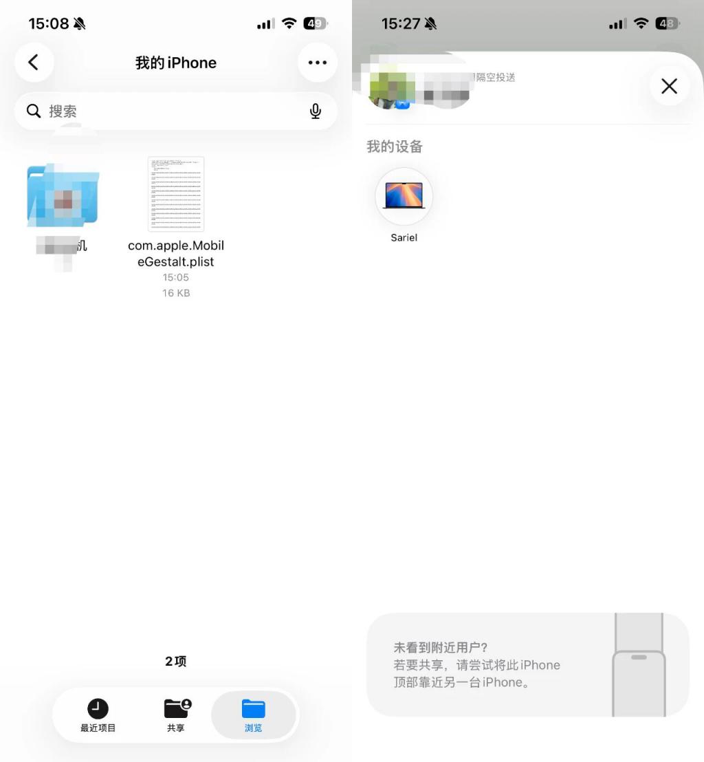 在文献 App 中找到刚刚自动生成的“ com.apple.MobileGestalt.plist ”文献,把它隔空投送到 Mac 上(Win 用户不错用微信或 QQ 共享):