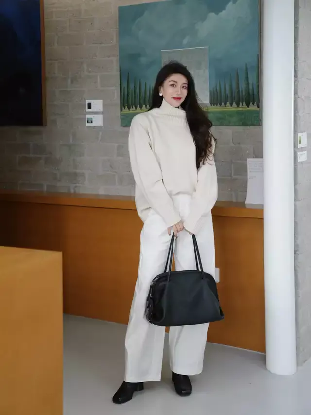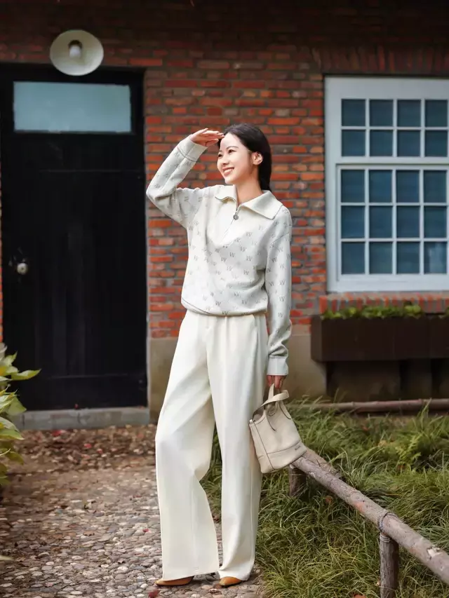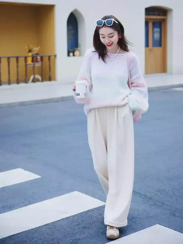 Tips②:渐变色毛衣搭配奶白色阔腿长裤