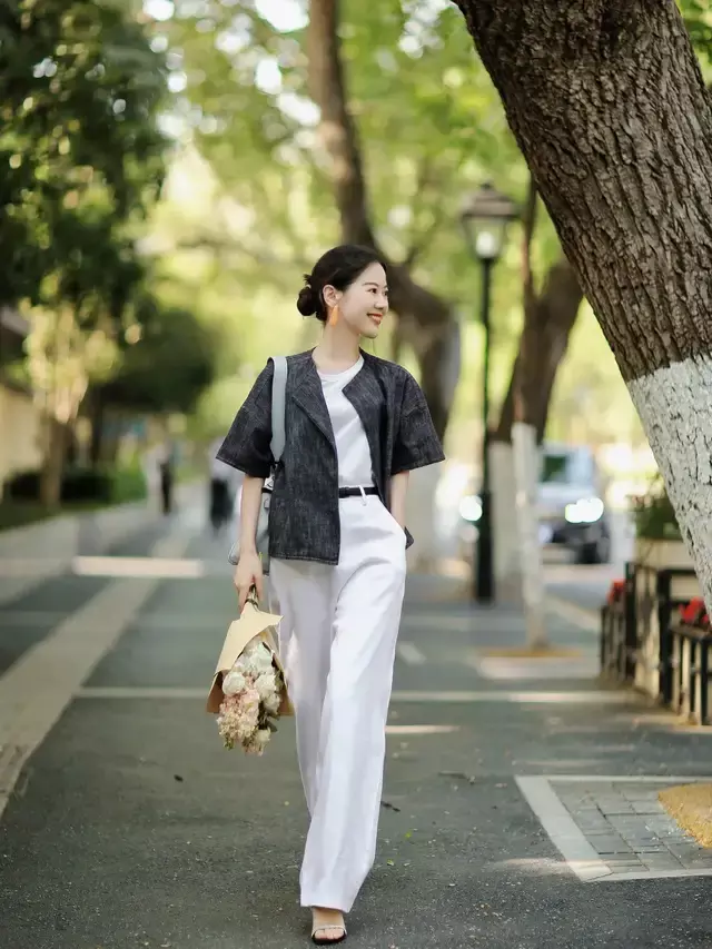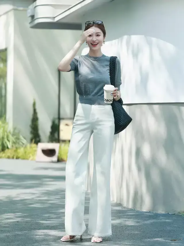 白色的裤子选微宽松名目,阔腿或者是微阔不错笔据我方的身高体型来决定,不外裤脚不要太长,刚巧在脚踝的位置最好,穿在身上阻塞易压身高。
