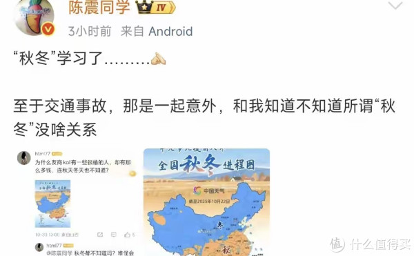 而当有网友以“朔方也曾入冬”为由反驳时,陈震则径直抒发了莫名。